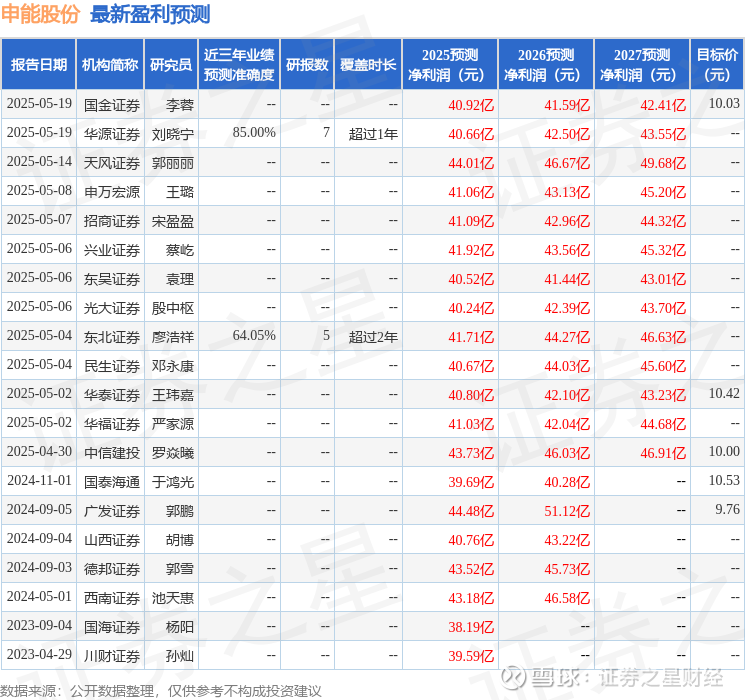 最新盈利预测明细如下: