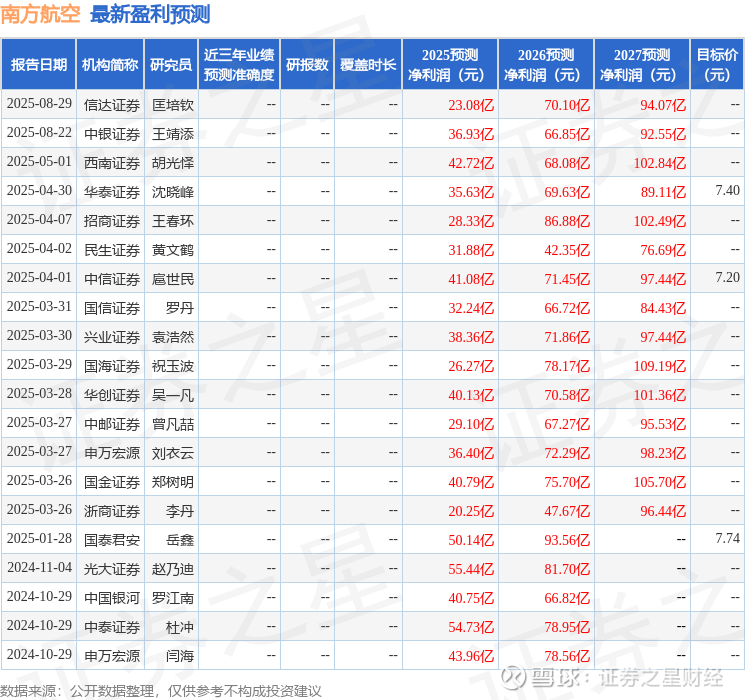 南方航空(600029) 业绩 2025年8月28日,南方航空发布2025年半年报。2025H1公司营业收入为863亿元,同比增长1.8%;归母净利润为-12.3亿元,同比增亏3亿元。其中Q2公司实现营业收入429亿元,同比上升6.7%;实现归母净利润-7.9亿元,同比减亏12亿元。 分析 运量增长对冲收益下降,H1营收小幅增长。2025H1公司营业收入同比增长1.8%,分业务看:(1)客运及客运相关服务:收入746亿元,同比增加1.6%,主要系运量增长对冲收益下降,2025H1公司ASK同比增长5.5%,客座率同比增长2.4pct至85.5%,RPK同比增长8.5%,均主要依赖国际线拉动。价方面,2024H1公司客公里收益为0.46元,同比下降6%,主要系商务线承压及燃油附加费减少,座公里收益同比下降3%;(2)货运:收入91亿元,同比增加4%,其中RFTK同比增长6.4%,货运吨公里收益同比下降2.1%。 油价下降推动毛利率改善,H1扣非净利减亏。2025H1受航油价格下降影响,公司单位座公里成本为0.42元,同比下降4%。2025H1公司毛利率为8.8%,同比增加1.5pct。同期,公司销售、管理、研发、财务费用率合计同比下降0.4%,其中财务费用率下降0.7ct,主要系汇兑损失减少。因递延所得税变动,公司所得税费用同H1比增加7亿元,且营业外收入同比减少约18亿元(上年同期存在较高飞机运营补偿),故公司增亏。扣除非经常性损益,2025H1公司扣非归母净利实则减亏14亿元。Q2淡季行业国内裸票提升,叠加油价下降,公司毛利增加26亿元,归母净利减亏11.9亿元。 局方多次开会强调反内卷,中期将受益供需优化。近期民航局多次召开会议强调民航领域综合整治“内卷式”竞争,8月《中国航空运输协会航空客运自律公约》正式发布,提出“杜绝以排挤竞争对手为目的的恶意竞争(如低于成本价倾销等)”。暑运航空业票价不及预期,与同质化竞争、商务表现较弱有关,短期“反内卷”有望为接下来的淡季票价托底。中期看,行业供给增速维持低个位数,而旅客量维持高个位数增长,预计2026年内将现供需拐点,票价提升公司利润有望释放。 盈利预测、估值与评级 考虑需求恢复慢于预期,下调公司2025-2027年净利预测至7亿元、49亿元、86亿元(原41/76/106亿元)。维持“买入”评级。 风险提示 宏观经济增速低于预期风险;人民币汇率贬值风险;油价大幅上涨风险;安全运行风险。