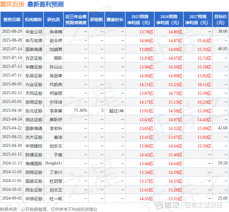 东吴证券股份有限公司吴劲草,阳靖近期对重庆百货进行研究并发布了研究报告《2025半年报点评:Q2归母净利润同比+8%符合业绩快报,零售主业利润增速好转》,给予重庆百货买入评级。