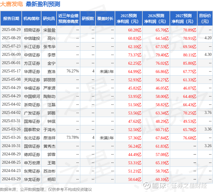 中国银河证券股份有限公司陶贻功,梁悠南,马敏近期对大唐发电进行研究并发布了研究报告《大唐发电2025年中报点评:煤电下行促进盈利提升,拟开展首次中期分红》,给予大唐发电买入评级。