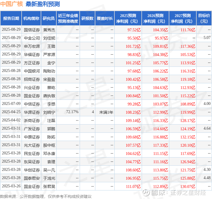 东吴证券股份有限公司袁理,任逸轩近期对中国广核进行研究并发布了研究报告《2025中报点评:电价影响业绩释放,拟收购惠州核电增厚EPS》,给予中国广核买入评级。