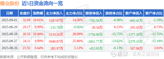 9月1日的资金流向数据方面,主力资金净流入1187.97万元,占总成交额14.36%,游资资金净流出742.56万元,占总成交额8.98%,散户资金净流出445.41万元,占总成交额5.39%。