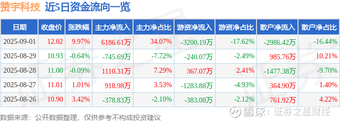 9月1日的资金流向数据方面,主力资金净流入6186.61万元,占总成交额34.07%,游资资金净流出3200.19万元,占总成交额17.62%,散户资金净流出2986.42万元,占总成交额16.44%。