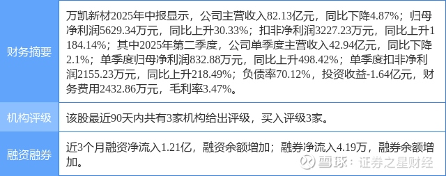 2025年8月29日,民生证券研究员刘海荣,李金凤发布了对万凯新材的研报《2025年半年报点评:行业拐点将至,三“新”启势,公司长期趋势可期》,该研报对万凯新材给出“买入”评级。研报中预计公司2025-2027年归母净利润分别为1.78、5.02、6.24亿元,EPS分别为0.35、0.97、1.21元,现价(2025/08/28)对应PE分别为50x、18x、14x,我们看好公司未来成长性,维持“推荐”评级。证券之星数据中心根据近三年发布的研报数据计算,该研报作者对此股的盈利预测准确度为12.65%。