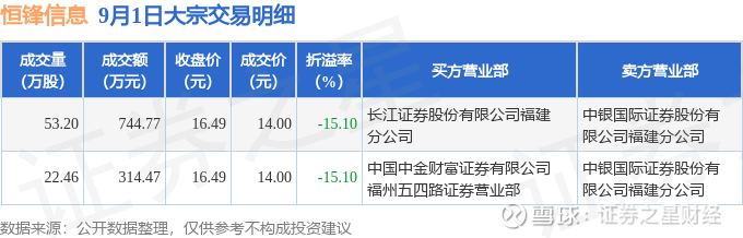 证券之星消息,9月1日恒锋信息发生大宗交易,交易数据如下: