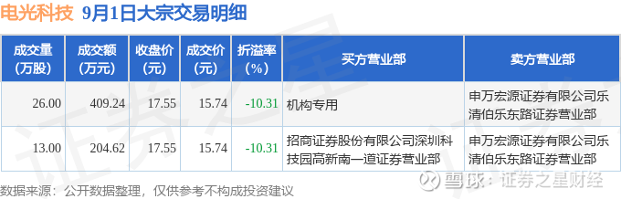 证券之星消息,9月1日电光科技发生大宗交易,交易数据如下: