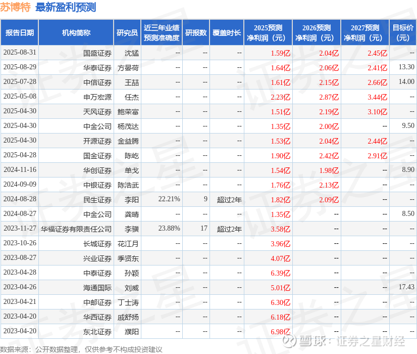 苏博特(603916) 2025Q2利润同环比高增,看好公司后续业绩改善,维持“买入”评级2025H1,公司实现营收16.73亿元,同比增长7.03%,实现归母净利润0.63亿元,同比增长18.68%,业绩显著改善。其中,2025Q2公司实现营收9.91亿元,同比增长0.70%,环比增长45.45%;实现归母净利润0.39亿元,同比增长20.86%,环比增长59.97%。公司业绩符合预期,我们维持公司2025-2027年盈利预测,预计2025-2027年归母净利润分别为1.53、2.04、2.44亿元,EPS分别为0.36、0.48、0.57元,当前股价对应2025-2027年PE为30.8、23.0、19.3倍。我们看好公司作为减水剂龙头,未来随下游需求回暖,业绩有望率先迎来修复,维持“买入”评级。 Q2高性能减水剂出货量同环比增长,功能性材料营收同比增速超25%2025Q2,公司高性能减水剂、高效减水剂、功能性材料板块销量分别为30.60、0.45、10.79万吨,同比+2.44%、-8.16%、+30.95%,环比+51.11%、+32.35%、+67.29%;营业收入分别为5.19、0.11、2.10亿元,同比-2.40%、-25.45%、+25.24%,环比+49.39%、+20.18%、+52.46%。其中,功能性材料板块营收同比增速超25%,抗裂材料、速凝剂、风电灌浆料等功能性产品增速明显,充分体现了公司功能性产品的市场潜力。 国内基建工程市场持续开拓,海外业务发展迅速 国内方面,公司加大了西部地区等重大工程的开拓力度,在水电、核电、铁路等领域取得了显著成果,参与了川藏铁路、海太长江隧道、三澳核电、旭龙水电等诸多项目,相关工程类订单获得增长的同时,业务利润水平也有所提升。海外方面,公司新增菲律宾、新加坡、泰国等海外子公司并陆续开展业务,持续扩大了海外业务版图。同时公司对海外销售的产品种类进行了扩充,并针对海外客户需求开发特种配方,不断提升海外市场竞争力。我们看好公司多板块协同发展,有望随经济复苏迎来修复行情。 风险提示:产能投放不及预期、下游需求大幅下滑、宏观经济下行。