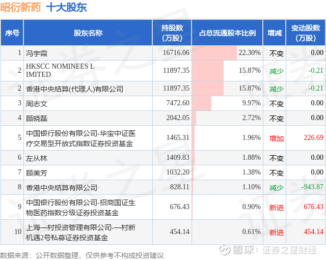根据昭衍新药2025年中报公布的十大股东详情如下: