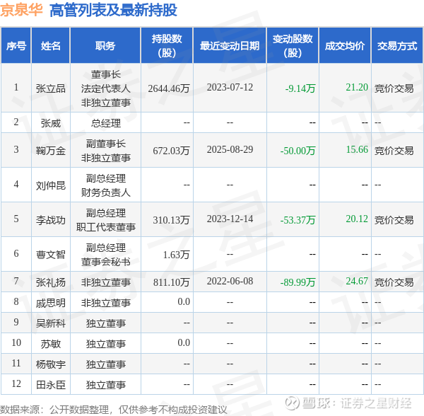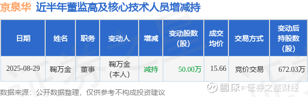 京泉华近半年内的董监高及核心技术人员增减持详情如下: