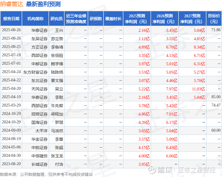 华金证券股份有限公司李蕙近期对纳睿雷达进行研究并发布了研究报告《受益于需求稳定提升及回款提速,公司二季度业绩实现高增》,给予纳睿雷达增持评级。