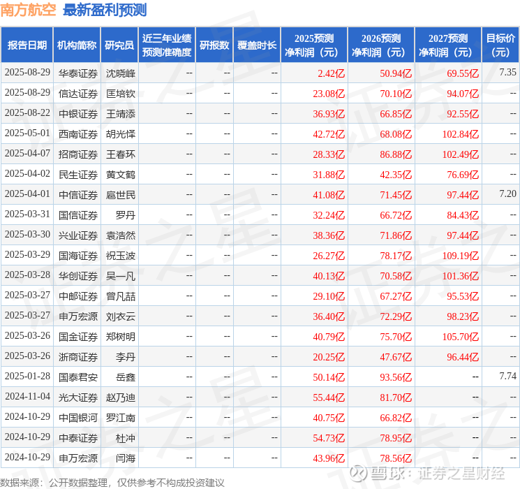 民生证券股份有限公司张骁瀚,黄文鹤,陈佳裕近期对南方航空进行研究并发布了研究报告《2025年半年报点评:Q2投资损失收窄,看好全货机盈利潜力释放》,给予南方航空买入评级。