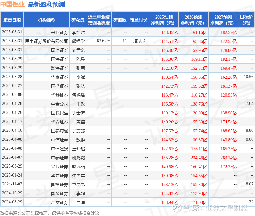 华安证券股份有限公司许勇其,黄玺近期对中国铝业进行研究并发布了研究报告《业绩表现稳健,中期分红回馈股东》,给予中国铝业买入评级。