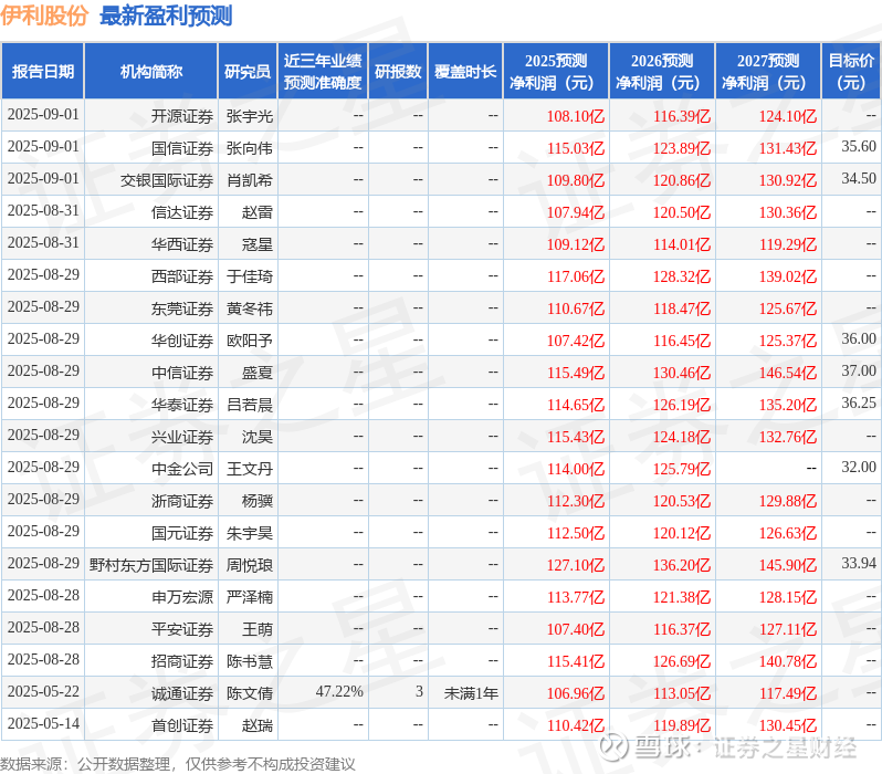 第一上海证券有限公司黎航荣近期对伊利股份进行研究并发布了研究报告《盈利拐点凸显,海外拓展加速》,下调伊利股份目标价至35.0元,给予买入评级。