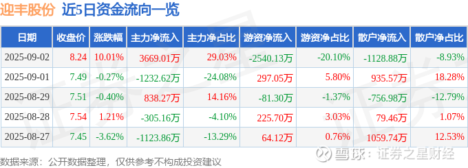 近5日资金流向一览见下表: