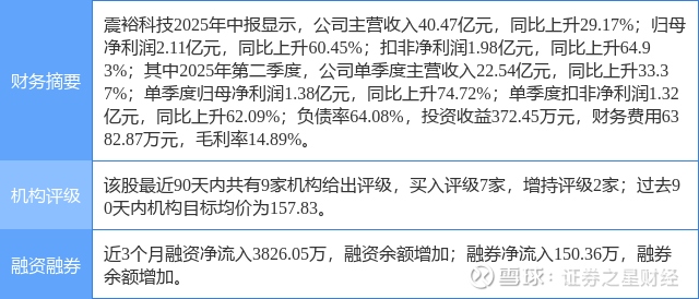2025年8月28日,开源证券研究员孟鹏飞,殷晟路,罗悦发布了对震裕科技的研报《公司信息更新报告:2025H1业绩超预期,上调EPS,机器人核心客户持续推进》,该研报对震裕科技给出“买入”评级。研报中预计公司2025-2027年归母净利润分别5.08/10.08/13.99亿元(原值4.01/6.03/7.61亿元),当前股价对应PE分别32.8/16.5/11.9倍,维持“买入”评级。证券之星数据中心根据近三年发布的研报数据计算,该研报作者对此股的盈利预测准确度为79.53%。