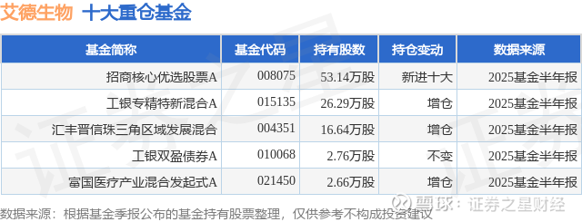 重仓艾德生物的公募基金请见下表:
