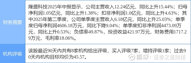 2025年9月1日,华龙证券研究员杨阳,李浩洋发布了对隆盛科技的研报《2025年半年报点评报告:Q2营收增长业绩短暂承压,看好公司人形机器人领域战略布局》,该研报对隆盛科技给出“买入”评级。研报中预计公司2025-2027年归母净利润分别为3.27/4.14/4.82亿元(前值为2025-2027年3.27/4.06/4.39亿元),当前股价对应PE为30.0/23.8/20.4倍,可比公司PE平均值为41.6/31.6/25.5倍,维持“买入”评级。证券之星数据中心根据近三年发布的研报数据计算,该研报作者对此股的盈利预测准确度为93.03%。