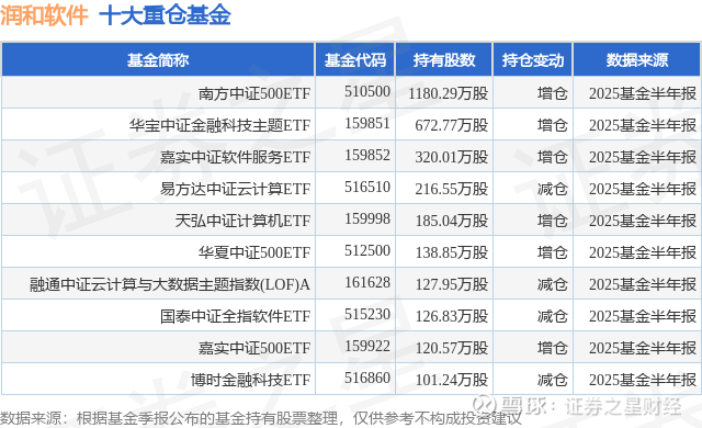 根据2025基金半年报公募基金重仓股数据,重仓该股的公募基金共69家,其中持有数量最多的公募基金为南方基金的南方中证500ETF。南方中证500ETF目前规模为134.38亿元,最新净值7.1967(9月1日),较上一交易日上涨0.93%,近一年上涨55.18%。该公募基金现任基金经理为罗文杰。罗文杰在任的基金产品包括:南方中证500ETF联接(LOF)A,管理时间为2013年4月22日至今,期间收益率为135.13%;南方沪深300ETF,管理时间为2013年5月17日至今,期间收益率为143.61%;南方沪深300ETF联接A,管理时间为2013年5月17日至今,期间收益率为130.79%。