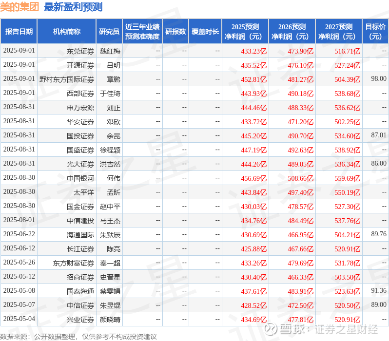 交银国际证券有限公司钱昊,肖凯希近期对美的集团进行研究并发布了研究报告《2025上半年业绩稳健增长,经营韧性凸显,维持买入》,上调美的集团目标价至96.2元,给予买入评级。