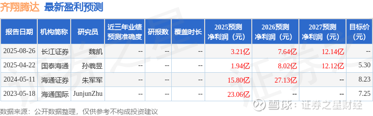 以下是详细的盈利预测信息: