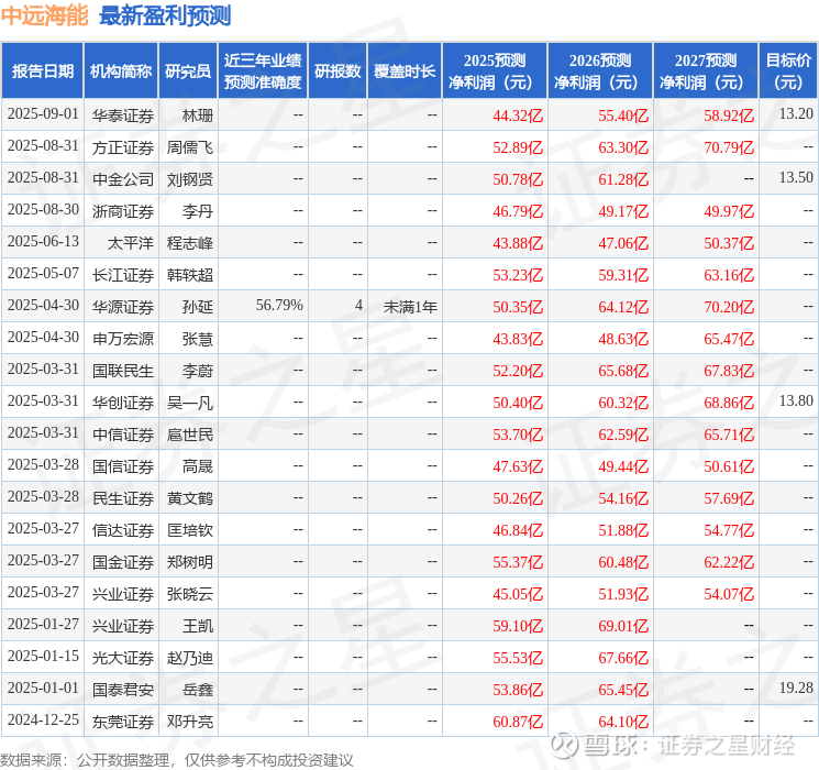 证券之星数据中心根据近三年发布的研报数据计算,华源证券孙延研究员团队对该股研究较为深入,近三年预测准确度均值为56.79%,其预测2025年度归属净利润为盈利50.35亿,根据现价换算的预测PE为10.04。