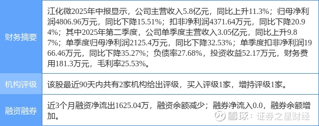 2025年8月28日,开源证券研究员陈蓉芳,金益腾,陈瑜熙发布了对江化微的研报《公司信息更新报告:营收稳步提升,镇江3.7万吨项目打开成长空间》,该研报对江化微给出“买入”评级。研报中预计2025-2027年归母净利润为1.18/1.42/1.90亿元(2025-2026原值为1.38/1.56亿元),当前股价对应64.5/53.6/39.9倍PE,看好公司湿电子化学品的长期发展,维持“买入”评级。证券之星数据中心根据近三年发布的研报数据计算,该研报作者对此股的盈利预测准确度为49.25%。