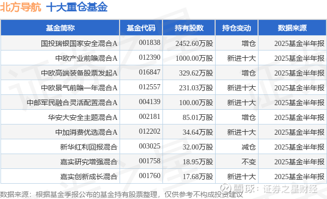 重仓北方导航的前十大公募基金请见下表: