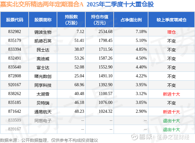 嘉实北交所精选两年定期混合A的前十大重仓股如下: