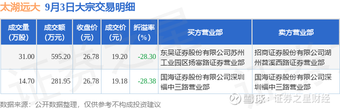 证券之星消息,9月3日太湖远大发生大宗交易,交易数据如下: