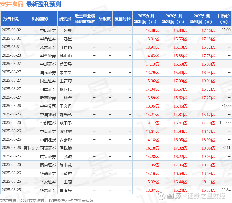 最新盈利预测明细如下: