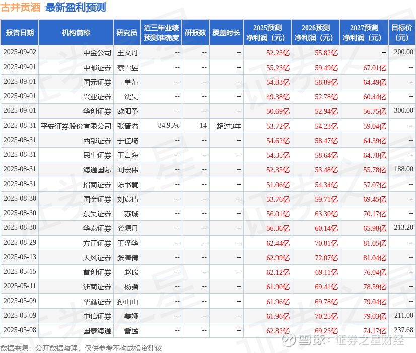 太平洋证券股份有限公司郭梦婕,林叙希近期对古井贡酒进行研究并发布了研究报告《古井贡酒:产品结构承压,基地市场彰显韧性》,下调古井贡酒目标价至185.4元,给予增持评级。