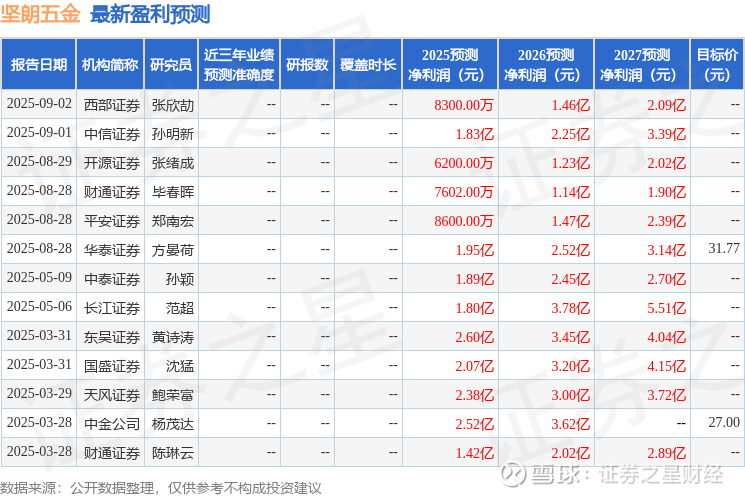 最新盈利预测明细如下: