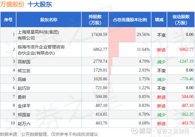 根据万盛股份2025年中报公布的十大股东详情如下: