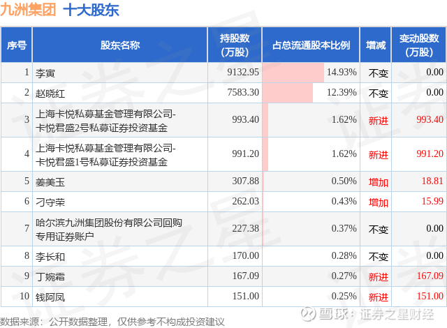 根据九洲集团2025年中报公布的十大股东详情如下:
