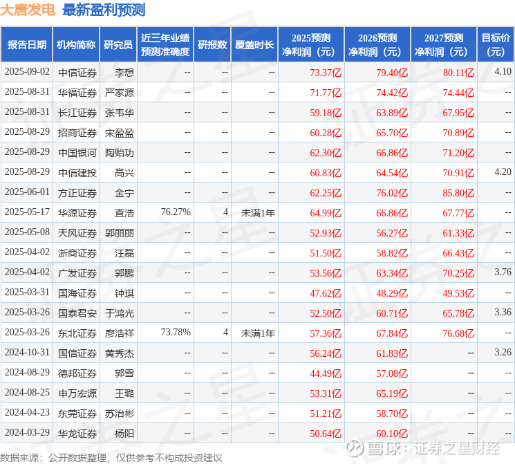 天风证券股份有限公司郭丽丽,王钰舒近期对大唐发电进行研究并发布了研究报告《煤电利润亮眼,拟中期分红》,给予大唐发电买入评级。