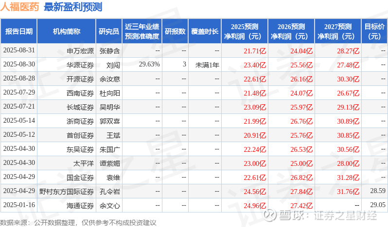 证券之星数据中心根据近三年发布的研报数据计算,华源证券刘闯研究员团队对该股研究较为深入,近三年预测准确度均值为29.63%,其预测2025年度归属净利润为盈利23.4亿,根据现价换算的预测PE为15.78。
