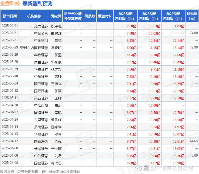 最新盈利预测明细如下: