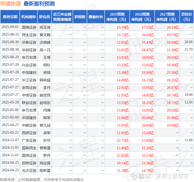 华源证券股份有限公司刘晓宁,孙延,张付哲,王惠武,曾智星近期对申通快递进行研究并发布了研究报告《价格战致短期盈利承压,反内卷改善弹性较大》,首次覆盖申通快递给予买入评级。