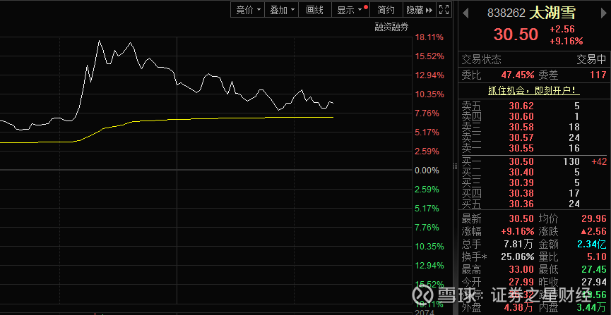 9月4日,太湖雪(838262)股价逆势大涨。截至发稿,股价涨幅超9%。此前盘中一度涨超15%。