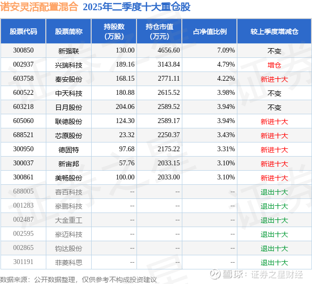 根据2025基金半年报公募基金重仓股数据,重仓该股的公募基金共2家,其中持有数量最多的公募基金为诺安基金的诺安灵活配置混合。诺安灵活配置混合目前规模为6.57亿元,最新净值3.141(9月3日),较上一交易日上涨0.74%,近一年上涨22.46%。该公募基金现任基金经理为刘晓飞。刘晓飞在任的基金产品包括:诺安恒鑫混合,管理时间为2022年11月12日至今,期间收益率为23.64%;