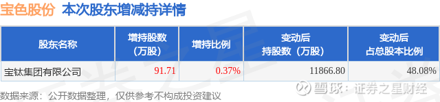 证券之星消息,9月4日宝色股份发布公告《宝色股份:关于控股股东增持公司股份触及1%整数倍暨增持计划实施的进展公告》,其股东宝钛集团有限公司于2025年7月11日至2025年9月4日间合计增持91.71万股,占公司目前总股本的0.3716%,变动期间该股股价下跌9.31%,截止9月4日收盘报17.82元。