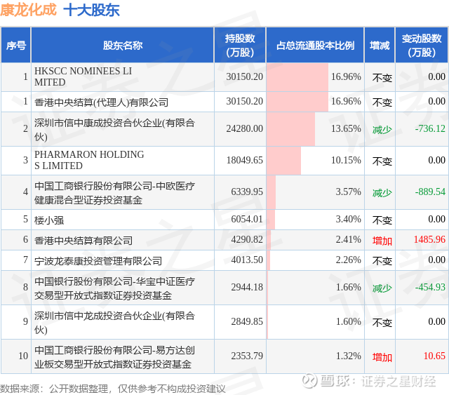 根据康龙化成2025年中报公布的十大股东详情如下: