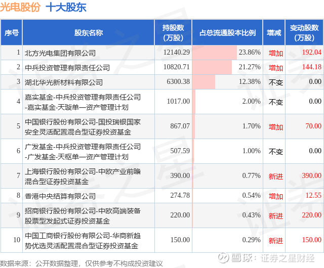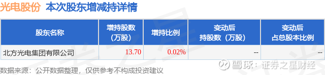 证券之星消息,9月4日光电股份发布公告《光电股份:北方光电股份有限公司控股股东增持进展的自愿性披露公告》,其股东北方光电集团有限公司于2025年9月2日至2025年9月4日间合计增持13.7万股,占公司目前总股本的0.0235%,变动期间该股股价下跌14.34%,截止9月4日收盘报17.56元。