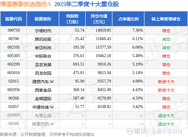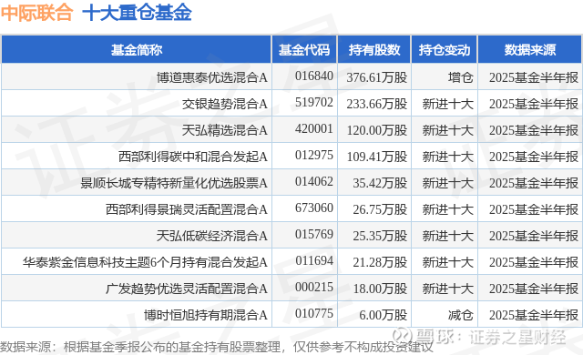 根据2025基金半年报公募基金重仓股数据,重仓该股的公募基金共16家,其中持有数量最多的公募基金为博道基金的博道惠泰优选混合A。博道惠泰优选混合A目前规模为6.56亿元,最新净值1.2664(9月4日),较上一交易日下跌0.5%,近一年上涨45.34%。该公募基金现任基金经理为孙文龙。