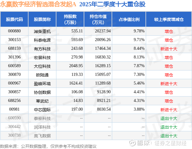 根据2025基金半年报公募基金重仓股数据,重仓该股的公募基金共2家,其中持有数量最多的公募基金为永赢基金的永赢数字经济智选混合发起A。永赢数字经济智选混合发起A目前规模为2.35亿元,最新净值1.2991(9月4日),较上一交易日下跌7.77%,近一年上涨124.45%。该公募基金现任基金经理为王文龙。王文龙在任的基金产品包括:永赢信息产业智选混合发起A,管理时间为2025年3月26日至今,期间收益率为-5.03%;永赢国企机遇慧选混合发起A,管理时间为2025年7月31日至今,期间收益率为-1.64%。