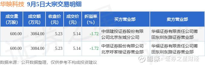 证券之星消息,9月5日华映科技发生大宗交易,交易数据如下: