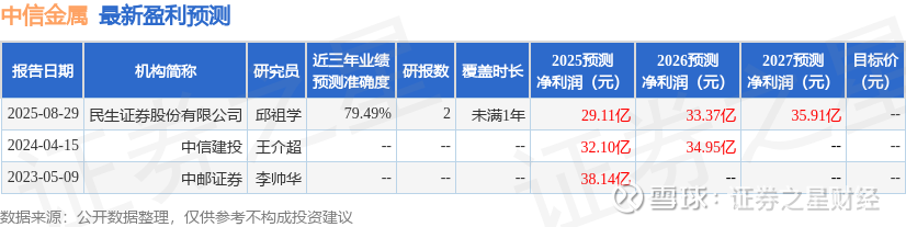 证券之星数据中心根据近三年发布的研报数据计算,民生证券股份有限公司邱祖学研究员团队对该股研究较为深入,近三年预测准确度均值为79.49%,其预测2025年度归属净利润为盈利29.11亿,根据现价换算的预测PE为15.31。