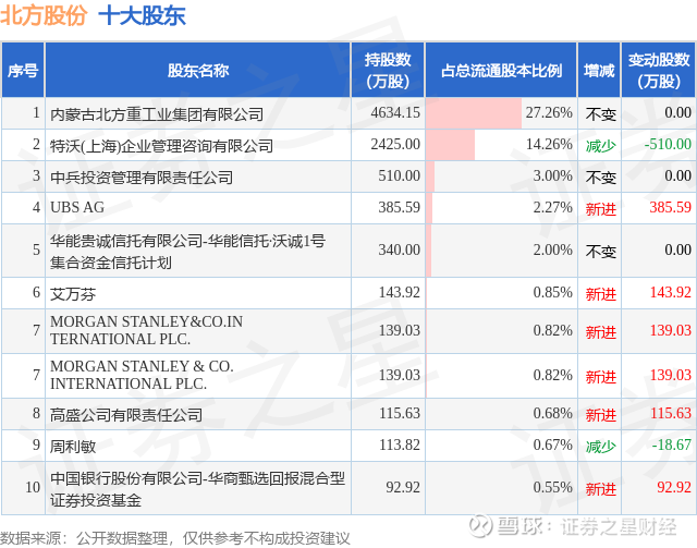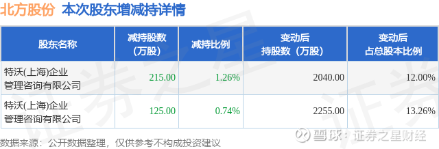 证券之星消息,9月5日北方股份发布公告《北方股份:内蒙古北方重型汽车股份有限公司关于持股5%以上股东权益变动触及1%刻度的提示性公告》,其股东特沃(上海)企业管理咨询有限公司于2025年8月28日至2025年9月5日间合计减持340.0万股,占公司目前总股本的2.0%,变动期间该股股价下跌6.16%,截止9月5日收盘报22.54元。