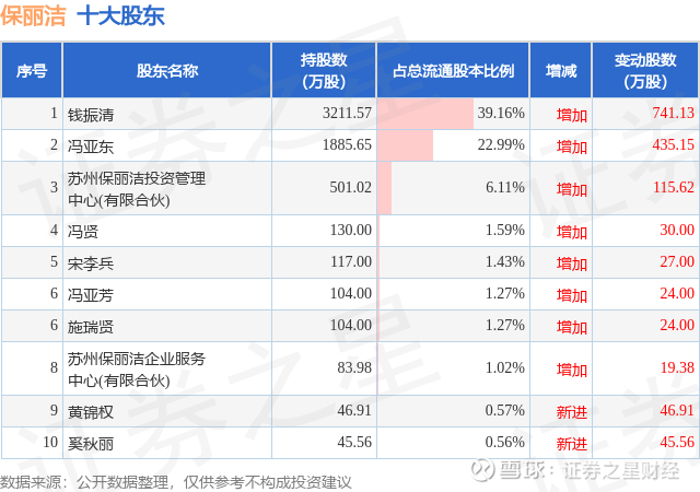根据保丽洁2025年中报公布的十大股东详情如下: