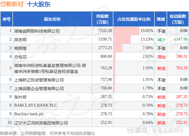 根据岱勒新材2025年中报公布的十大股东详情如下: